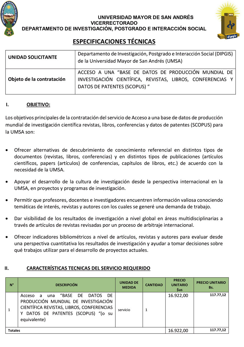 SOLICITUD DE EXPRESIONES DE INTERÉS (DIPGIS-UMSA)